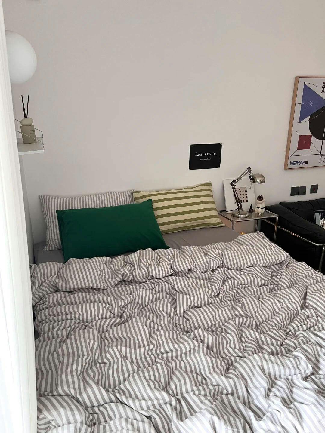 Crafted from soft washed cotton, this striped bedding set brings a relaxed yet refined look to your bedroom. The combination of crisp stripes and solid pillowcases adds a modern twist to a timeless design, perfect for minimalist and cozy interiors.